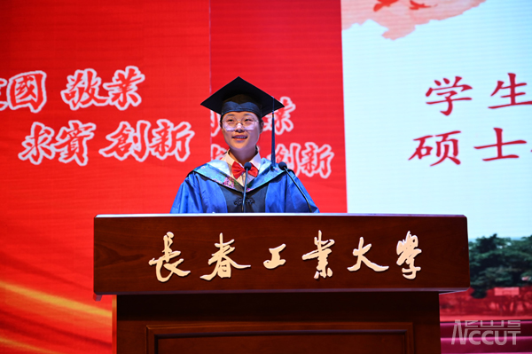 经济管理学院94届毕业生、长春光华科技发展有限公司总经理王逸夫代表全体校友,国际教育学院院长崔高健教授代表全体教师,数学与统计学院硕士研究生尹冬梅、机电工程学院摩洛哥籍本科生欧阳代表全体毕业生分别发言,表达了对同学们的美好祝愿和对母校的感激之情。
