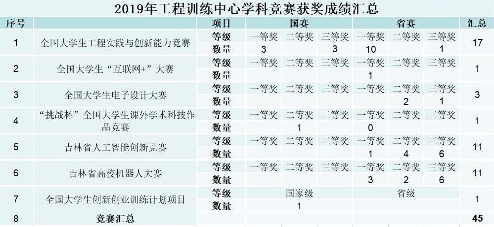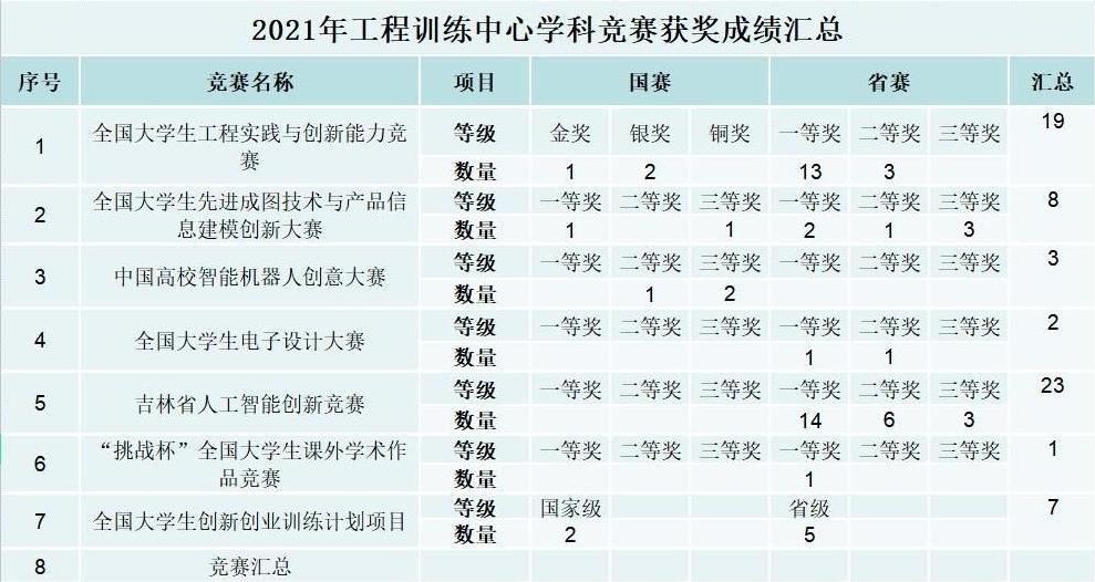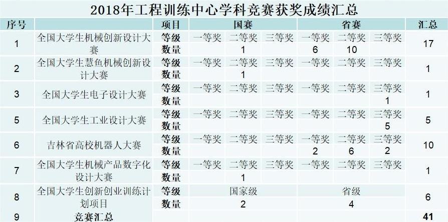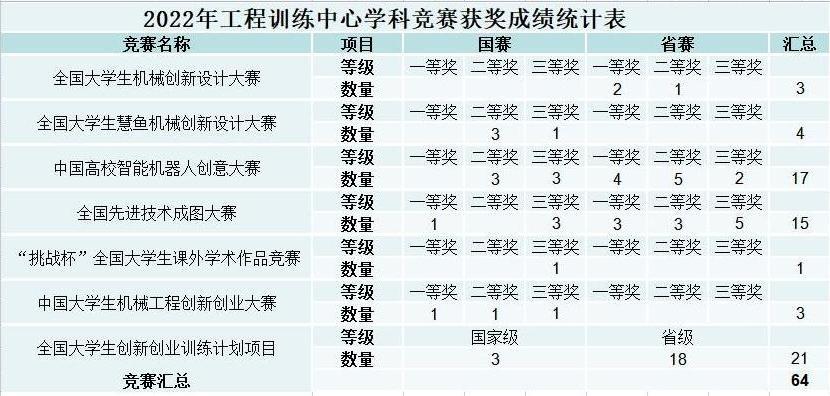 近五年年工程训练中心学科竞赛获奖成绩统计表