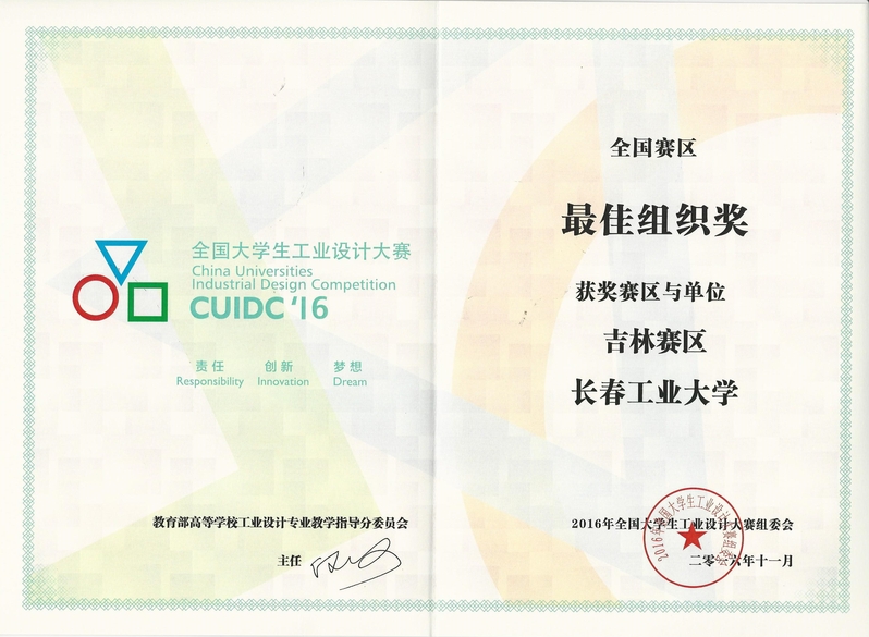 2016年全国大学生工业设计大赛最佳组织奖(国家级)
