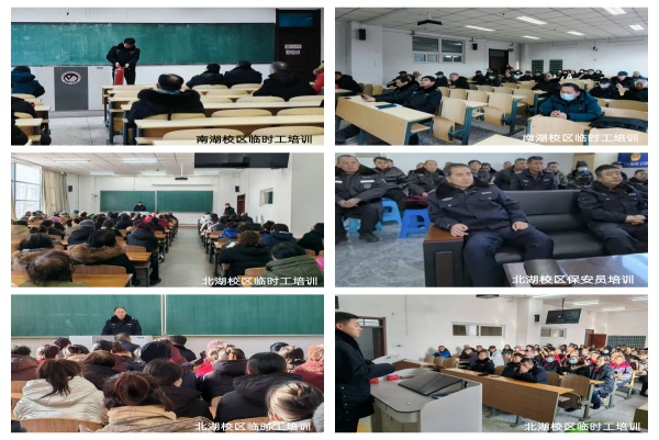 为进一步提高我校保安员、门卫更夫的职业素养、专业技能和应急处置能力,切实做好假期楼宇管控、治安巡查、突发事件应急处置等安全管理与防范工作,近期我处分别在南湖校区科研楼、北湖校区教室为外聘保安员、各楼宇门卫更夫开展了以防火、防盗及具体安全问题处理方法为主要内容的安全教育、业务培训和应急演练活动。